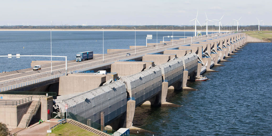 Het Haringvlietsluizen complex is onderdeel van de Deltawerken en bestaat uit spuisluizen van ongeveer een kilometer lengte waarin 17 spuischuiven het Haringvliet tussen Voorne-Putten en Goeree-Overflakkee in Zeeland af kunnen sluiten van de Noordzee. Over het sluizencomplex ligt de weg N57 die rond 1970 in gebruik is genomen.
