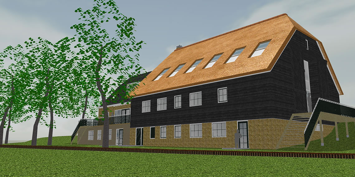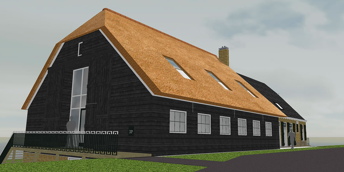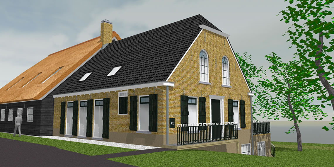 Vanwege de situering in het dijklichaam dienden er speciale voorzieningen te worden getroffen, hierbij valt te denken aan damwanden met waterkerende functie voordat de kelder kon worden gebouwd. Het resultaat is een prachtige woning met kantoor in geheel authentieke stijl.
